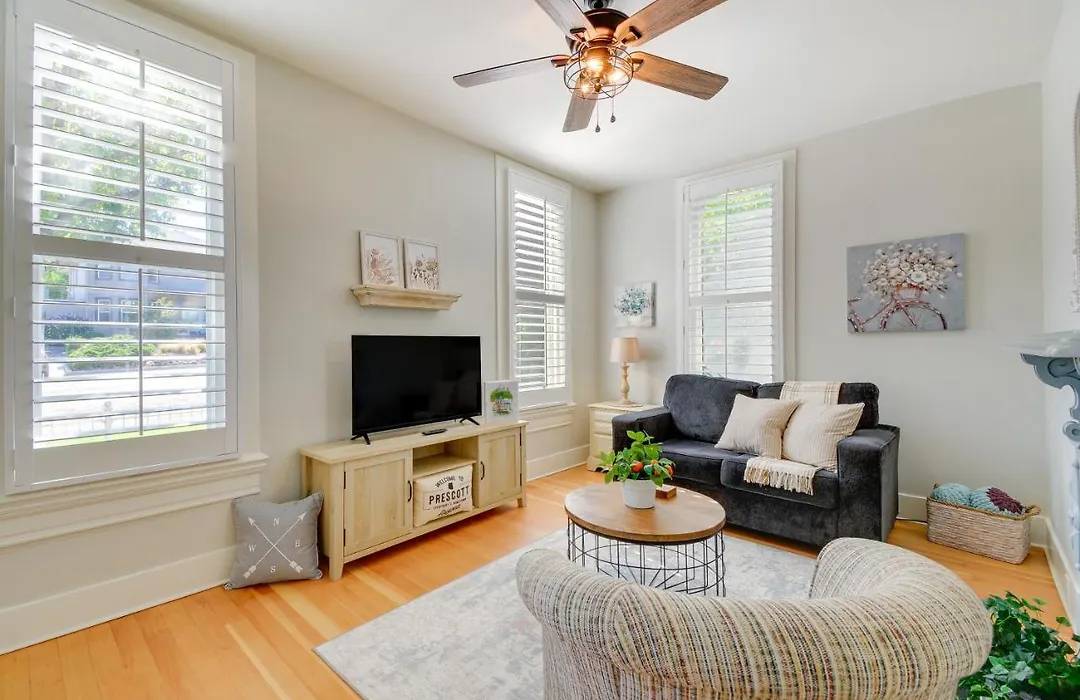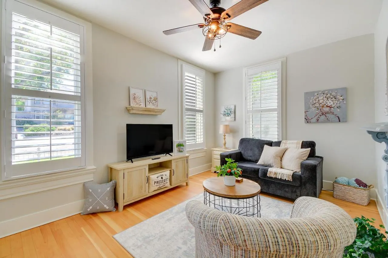 1-slaapkamer Cozy Historic Prescott Home Patio, Walk Downtown! ligt binnen 12 minuten te voet van de Yavapai County Courthouse en biedt parkeerplaatsen voor degenen die met de auto reizen. Het A.C. Williams Granite Creek Park is op enkele minuten rijden van dit appartement van 60 m^2 te vinden.